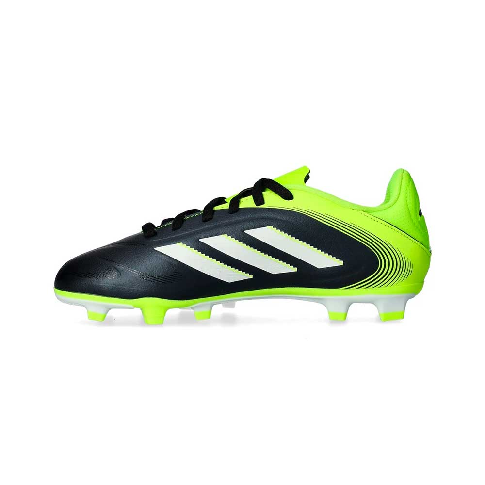 Scarpe da calcio adidas Copa Pure III League FG/MG. In pelle sintetica da usare su campi in erba naturale e artificiale di seconda generazione. D’alta gamma e disponibili nella colorazione Core Black-White-Lucid Lemon, per giocatori classici.